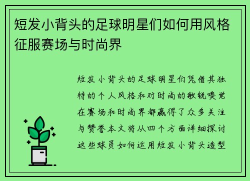 短发小背头的足球明星们如何用风格征服赛场与时尚界