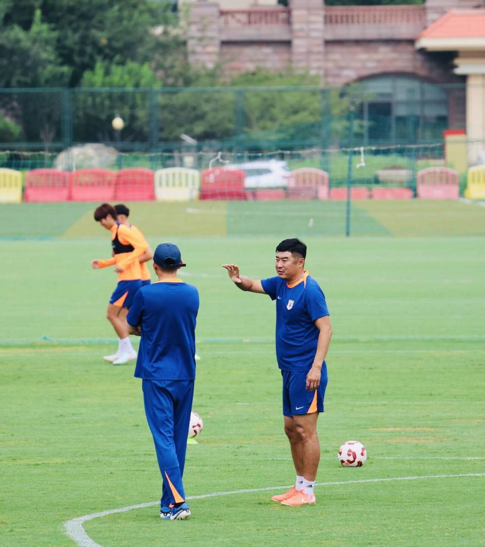 本场比赛,泰山队的场上队长人选也是一个看点,克雷桑和郑铮是最有可能担任队长的人选。泰山队的训练内容并没有太大变化,慢跑热身后,全队还是进行传接球游戏训练。队员们按照要求先是进球头球接力传球,紧接着是胸部停球后再进行脚弓传球,考验队员的基本功。在这个过程中,队员们的氛围还是很放松,年轻人所在的小组在“输掉”头球接力传球后没有气馁,他们在下一个传接球环节胜出,小伙子们也很开心。